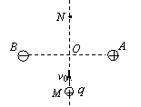如图所示,在绝缘平面上固定两个电量相等的异种点电荷A、B,其中A带正电,B带负电荷,它们的连线的中点是O,MN是AB中垂线上的两点,两点电荷连线与中垂线所在平面与纸面平行,在垂直纸面方向有一磁场;有一个正电荷q以初速度v0沿中垂线由M运动到N的过程中,忽略重力作用,则下列说法中正确的是