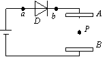 如图所示,D是一只二极管,它的作用是只允许电流从a流向b,不允许电流从b流向a ,平行板电容器AB内部原有电荷P处于静止状态,当两极板A和B的间距稍增大一些的瞬间(两极板仍平行),P的运动情况将是(