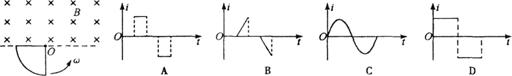 10.如图虚线上方空间有垂直线框平面的匀强磁场,直角扇形导线框绕垂直于线框平面的轴O以角速度ω匀速转动.设线框中感应电流方向以逆时针为正方向,那么在图中能正确描述线框从图所示位置开始转动一周的过程中,线框内感应电流随时间变化情况的是( )