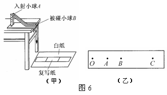 ml、m2的碰撞来探究碰撞中的不变量。按图6甲安装好仪器后开始实验,第一次不放被碰小球,第二次把被碰小球直接静止放在斜槽末端的水平部分,在白纸上记录下重锤位置和各小球落点的平均位置,依次为O、A、B、C,如图6乙所示。设入射小球和被碰小球的质量依次为ml、m2,则下列说法中正确的有( )