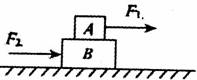 如图所示,质量相等的两物体A、B叠放在粗糙的水平面上,A与B接触面光滑。A受水平恒力F1,B受水平恒力F2,F1与F2方向都向右,且F2>F1。若物体A和B保持相对静止,则物体B受到的摩擦力大小和方向应为( )
