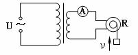 21.如图,理想变压器原副线圈匝数之比为n,原线圈接交变电压U,副线圈接有一个交流电流表和一个电动机,电动机线圈电阻为R,当输入端接通电源后,电流表示数为I,电动机带动质量为m的物体以速度