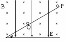 24.(19分)在倾角为30°的光滑斜面上有相距40m的两个可看作质点的小物体P和Q,质量分别100g和500g,其中P不带电,Q带电。整个装置处在正交的匀强电场和匀强磁场中,电场强度的大小为50V/m,方向竖直向下;磁感应强度的大小为