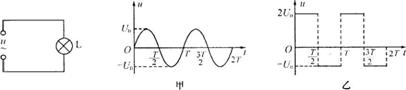 18.先后用不同的交流电源给同一盏灯泡供电。第一次灯泡两端的电压随时问按正弦规律变化(如图甲所示);第二次灯泡两端的电压变化规律如图乙所示。若甲、乙图中的