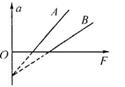 20.如图所示,A、B两条直线是在A、B两地分别用竖直向上的力F拉静止在水平地面上的,质量分别为mA和mB的两个物体时,得出的加速度α与力F之间的关系图线。分析图线可知