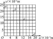 21.如图所示,在直角坐标系xoy的第1象限存在着方向平行于y轴的匀强电场,场强大小为5×103 N/C。一个可视为质点的带电小球在t=0时刻从y轴上的口点以沿z轴正方向的初速度进入电场,图中的b、c、d是从t=0时刻开始每隔0.1 s记录到的小球位置,已知重力加速度的大小是10 m/s2。则以下说法正确的是