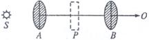 D.将偏振片A转动一个角度,使得O处强度最大,偏振片A转过的角度等于![]()