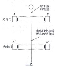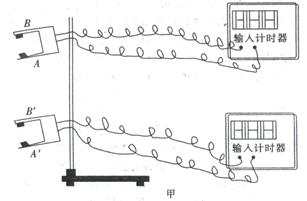。此装置能精确地记录物体通过光电门所用的时间。现有一小球从两光电门的正上方开始自由下落,如图乙所示。若要用这套装置来验证小球从AB到A/B/的过程中机械能守恒,则除小球的直径D以外还需要测量的物理量有: ▲ (每个物理量均用文字和字母表示,如小球直径D);验证机械能守恒的关系式为 ▲ 。写出一条对提高实验结果准确程度有益的建议: ▲ 。