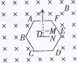 25.(21分)如图所示,ABCDEF是一边长为L的正六边形盒子,各边均为绝缘板,盒外有方向垂直纸面向里、范围足够大的匀强磁场,磁感应强度大小为B。在盒内有两个与AF边平行的金属板M、N,且金属板N靠近盒子的中心O点,金属板M和盒子AF边的中点均开有小孔,两小孔与O点在同一直线上。今在O点静止放置一质量为m,电荷量为q的带正电粒子(不计粒子的重力)。