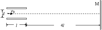 21.如图所示,两平行金属板间有一竖直方向的匀强电场,板长为 l,板间距离为d,在距离板的右端4l处有一竖直放置的光屏M,一带电量为q、质量为m的质点从两板中央射入板间,最后垂直打在M屏上,则下列结论正确的是: