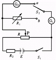 (a) 实验中该同学先按正确的操作步骤连接电路,接着合上开关Sl,再将开关S2与a相连,调节滑动变阻器R的滑片P,当电流表G2有某一合理的示数时,记下电流表G1的示数为I;然后将开关S2与b相连,保持_____不变,调节_______,使电流表Gl的示数仍为I时,读取电阻箱的阻值为r.