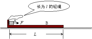 m的木板B静止在水平面上,其质量为M=2kg.一质量为m=1kg(可视为质点)的物块A停在长木板的左端,挡板和物块间用长为l=1m的轻绳连接, A与B之间、B与水平面之间的动摩擦因数均为μ=0.2.现给物块A持续施加一大小恒为F=4N的水平拉力,使A由静止开始在B上向右运动,当绳拉直后即绷断,且绷断后瞬间B的速度小于A,其后木板B滑行了s=