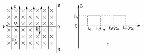 (2)若小球能始终在电场所在空间做周期性运动.则当小球运动的周期最大时,求出磁感应强度B0及运动的最大周期T的大小.
