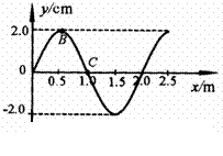 (1)(4分)如右图所示是一列向x轴正方向传播的简谐横波在t = 0时刻的波形图,此时质点B恰好运动到波峰,质点C恰好通过平衡位置。若该波的周期为4.0s,则对质点B和