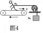 A.若m2静止不动,运动员对传送带的摩擦力大小为m2g