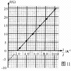 ③实验时,改变电阻箱R的值,记录下电流表A的示数I,得到若干组R、I的数据。根据实验数据绘出如图12所示的R-