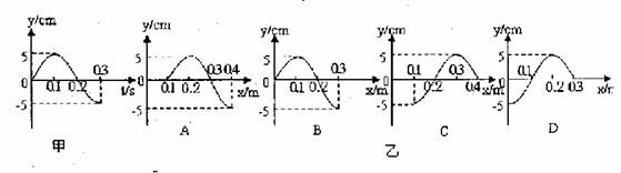18.质点以坐标原点O为中心位置在y轴上做简谐运动,其振动图象如图甲所示,振动在介质中产生的简谐横波沿x轴正方向传播,波速为1.0m/S. 0.3s后,此质点立即停止运动,再经过0.1s后的波形图是图乙中的 ( )