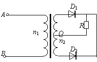 如图所示,在AB间接入交流电U1=220V,通过理想变压器和二极管D1、D2给阻值R=20Ω的纯电阻负载供电,已知D1、D2为相同的理想二极管,正向电阻为0,反向电阻无穷大,变压器原线圈n1=110匝,副线圈n2=20匝,Q为副线圈正中央抽头,为保证安全,二极管的反向耐压值至少为U0,设电阻R上的热功率为P,则有( )
