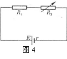 如图4所示,R1为定值电阻,R2为可变电阻,E为电源电动势,r为电源的内电阻,以下说法中错误的是 ( )