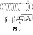 如图5所示,绕在铁芯上的线圈、电源、滑动变阻器和电键组成闭合回路。在铁芯的右端套有一个表面绝缘的铜环A,下列各种情况中铜环A中没有感应电流的是( )