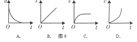 12.雨点从高空由静止下落,在下落过程中,受到的阻力与雨点下落的速度成正比,下图9中能正确反映雨点下落运动情景的是( )