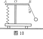 如图10所示,轻杆AB可绕固定轴O转动,A端用弹簧连在小车底板上,B端用细绳拴一小球,车静止时,AB杆保持水平,当小车向左运动时,小球偏离竖直方向且保持偏角不变,则 ( )