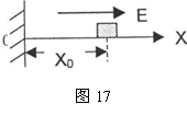 (12分)一个质量为m带有电荷为-q的小物体,可在水平轨道OX上运动,O端有一与轨道垂直的固定墙。轨道处于匀强电场中,场强大小为E,方向沿OX轴正方向如图17所示,小物体以速度V0从图示位置向左运动,运动时受到大小不变的摩擦力f作用,设小物体与墙壁碰撞时不损失机械能,且电量保持不变,求它停止前所通过的总路程S。