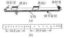 ③把打点计时器固定在紧靠气垫导轨左端弹射架的外侧,将纸带穿过打点计时器和弹射架并固定在滑块1的左端,调节打点计时器的高度,直至滑块拖着纸带移动时,纸带始终在水平方向;