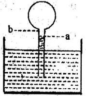 如图所示伽利略设计的世界上第一个温度计示意图,上部是一个球形容器,里面有一定质量的空气,下部是一根细管,细管插入带色液体中,制作时先给球形容器微微加热,跑出一些空气,插入液体时,带色液体上升到管内某一高度。测量时,球形容器与所测物质接触。已知外界大气压为