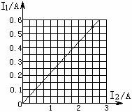 要求实验时,改变变阻器的阻值,在尽可能大的范围内测得多组A1表、A2表的读数I1、I2,利用I1-I2的图象,求出未知电阻的电阻值。