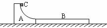 24.(19分)如图所示,一上表面光滑且半径为R=0.3m的1/4圆弧槽A与一上表面粗糙且动摩擦因数为μ=0.1的长木板B通过锁定装置连接,静止在光滑的水平地面上,圆弧槽A的底端与长木板B上表面相平,一滑块C(可视为质点)紧贴圆弧槽A顶端由静止自由下滑,当滑块C滑过圆弧槽A底端瞬间,AB之间自行解除锁定,最终滑块C停在长木板B上,已知圆弧槽A、长木板B、滑块C的质量均为m=1kg,g=10m/s2。试求: