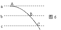 16.如图6所示,a、b、c是匀强电场中的3个等势面,Uab=Ubc,一带电粒子从A点进入并穿过电场,其轨迹与等势面交点依次为A、B、C,若不计重力作用,则