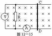 11、如图12-12所示,导轨与一电容器的两极板C、D连接,导体棒ab与导轨接触良好,当ab棒向下运动时,带正电的小球将向_____________板靠近.