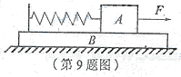 如图所示,两质量相等的物块A、B通过一轻质弹簧连接,B足够长、放置在水平面上,所有接触面均光滑。弹簧开始时处于原长,运动过程中始终处在弹性限度内。在物块A上施加一个水平恒力,A、B从静止开始运动到第一次速度相等的过程中,下列说法中正确的有