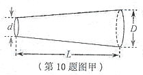 10.(8分)有一根圆台状均匀质合金棒如图甲所示,某同学猜测其电阻的大小与该合金棒的电阻率ρ、长度L和两底面直径d、D有关。他进行了如下实验: