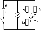 如图所示,电池的电动势为E,内阻为r,电路中的电阻R1、R2和R3的阻值都相同,电键S处于闭合状态。若将电键S1由位置1切换到位置2,则
