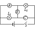 如图所示电路中,A、B、C分别表示理想电流表或电压表,它们的示数以A或V为单位。电键S闭合后,A、B、C的示数分别为1、2、3,灯L1、L2恰好都正常光。已知灯L1、L2的额定功率之比为3∶1。可以判定
