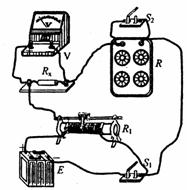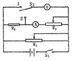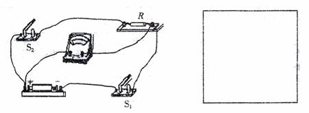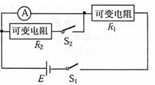 待测电池(内阻约为几欧);电压表(电压表内阻远大于电池的内电阻,其量程大于电 池的电动势,表盘上刻度清晰,但数字不清);定值电阻R1(10Ω);定值电阻R2(10kΩ);两个开关和若干导线.