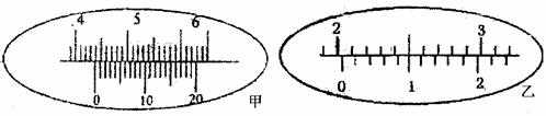 (1)(4分)用游标为20分度(测量值可准确到0.05mm)的游标尺测定一个圆筒的深度时,卡尺上部分刻度的示数如图甲所示;用游标为50分度(测量值可准确到0.02mm)的卡尺测试该圆筒的外径时,卡尺上部分刻度的示数如图乙所示,分别读出它们的示数。图甲(游标为20分度)的读数是 ;图乙(游标为50分度)读数是 。w.w.^w.k.s.5*
