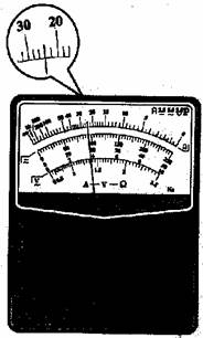 倍率,用正确的操作方法测量,发现指针偏角太小(相对左端),为了较准确得进行测量,重新选用