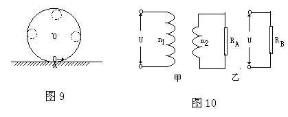 13.如图10所示,甲图中的变压器为理想变压器,其原线圈接到U=220V的民用交流电源上,副线圈与阻值为RA的电阻接成闭合电路;乙图中阻值为RB的电阻直接接到电压U=220V的民用交流电源上,结果发现RA与RB消耗的电功率恰好相等,则可知变压器原、副线圈的匝数比 n1∶ n2为_____。
