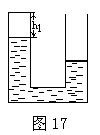 19.(14分)在水平地面上竖直放置一个截面均匀等臂的U型玻璃管,管内盛有密度为ρ1的液体,如图17所示。玻璃管的右侧上端开口,左侧上端封闭。左侧封闭的空气柱高度为h1,右侧液面与管口相距高度为2h1。在右侧液面上放置一个质量和厚度都可忽略不计的活塞,它与管壁间既无间隙又无摩擦。从右端开口处缓慢注入密度为ρ2的液体,直到注满为止。注入液体后左侧空气柱的高度变为h1/2。设在注入液体过程中,环境温度不变,大气压强为ρ0=3ρ1gh1。求(1)从右端注入的液体高度;(2)两种液体的密度之比ρ1∶ρ2。