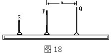 20.(15分)如图18所示,水平光具座上的S为一个点光源,P是中心带圆孔的不透光纸板,圆孔内可以嵌入一个凸透镜L,Q是一个光屏。S、P、Q的中心轴线在同一水平线上。已知Q与P的距离为a。当P中不嵌入凸透镜时,在光屏Q上出现一个光斑,这个光斑的直径恰是P中心圆孔直径的3倍。当把凸透镜L嵌入圆孔中,光屏Q上的光斑直径与P中心圆孔直径恰好相等。