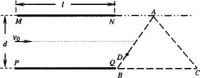 14.(12分)板MN、PQ水平放置,两板间距为d、板长为l,在紧靠平行板右侧的正三角形区域内存在着垂直纸面的匀强磁场,三角形底边BC与PQ在同一水平线上,顶点A与MN在同一水平线上,如图所示.一个质量为m、电量为+q的粒子沿两板中心线以初速度v0水平射入,若在两板间加某一恒定电压,粒子离开电场后垂直AB边从D点进入磁场,BD=