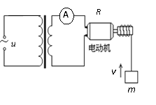 8.如图所示为一理想变压器,原、副线圈的匝数比为n.原线圈接电压为u=U0sinωt的正弦交流电,输出端接有一个交流电流表和一个电动机,电动机的线圈电阻为R.当输入端接通电源后,电动机带动一质量为m的重物匀速上升,此时电流表的示数为I,重力加速度为g,下列说法正确的是 ( )