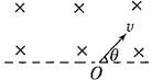 如图所示,在垂直纸面向里的匀强磁场的边界上,有两个质量和电荷量均相同的正、负粒子(不计重力影响), 从O点以相同的速度先后射入磁场中,入射方向与边界成θ角, 则正、负粒子在磁场中( )