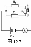 (★★★★★)如图12-7所示,电源电动势E=12 V,内阻r= 0.5 Ω,R1=2 Ω,R2=3 Ω,滑动变阻器的总电阻R0=5 Ω,试分析:在滑动片K从a端移至b端的过程中,电流表A的示数如何变化?