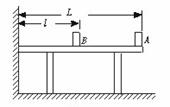 (★★★★★)如图3-12所示,均匀木板AB长12 m,重200 N,在距A端3 m处有一固定转动轴O,B端被绳拴住,绳与AB的夹角为30°,板AB水平.已知绳能承受的最大拉力为200 N,那么重为600 N的人在该板上安全行走,离A端的距离应在什么范围?
