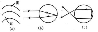 (2)霓是阳光在水滴内经二次折射、二次全反射形成的,如图(c)所示,从内到外色序的排列是 。
