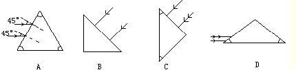 15.(4分)下图中各三棱镜的折射率均为